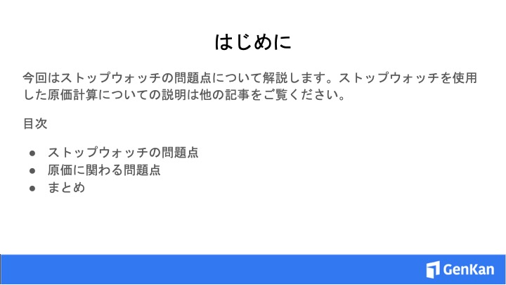 原価計算研究会前会長でGenkanのアドバイザーでもある一橋大学教授の尾畑 裕先生はストップウォッチの問題点について以下の点を述べています。